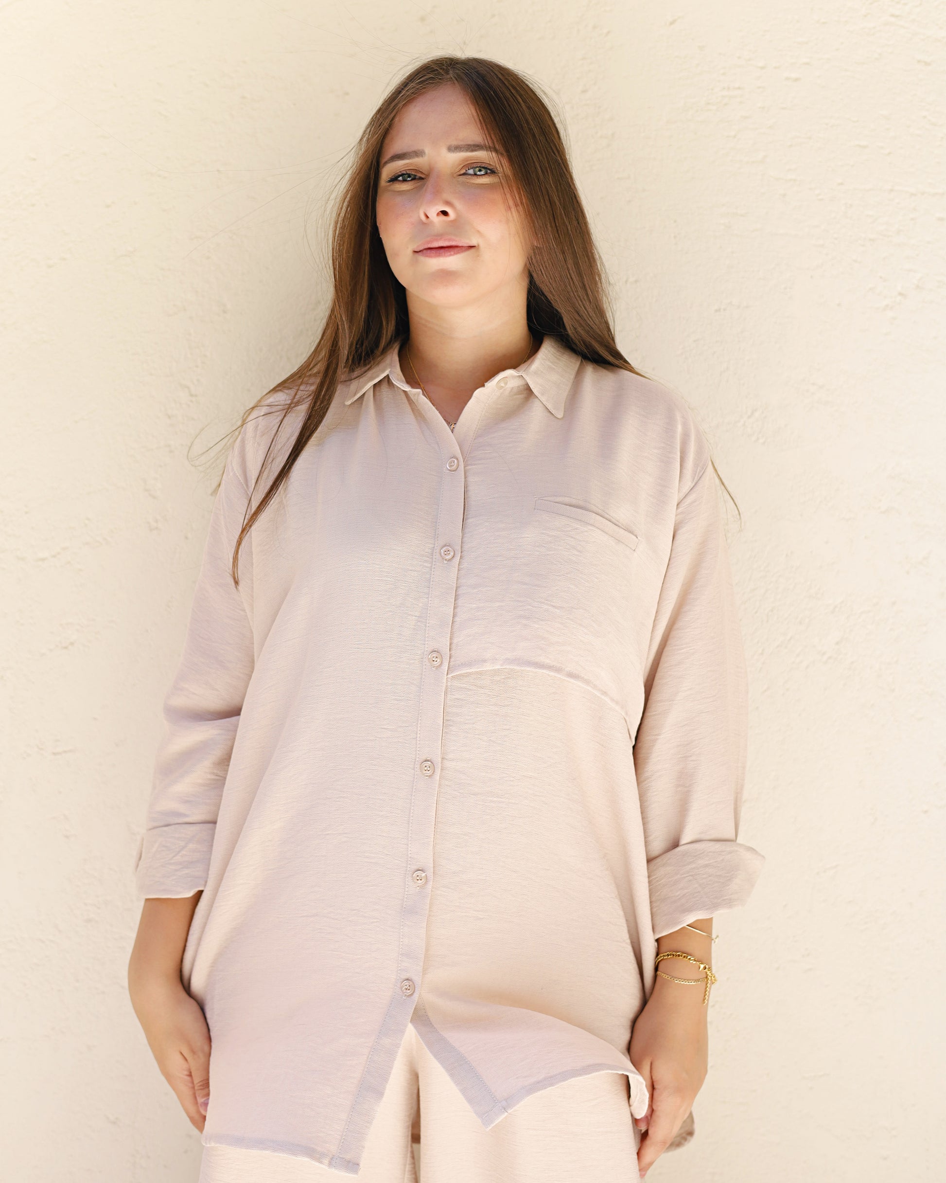 Elevate your wardrobe with our chic and comfortable linen set, featuring a relaxed-fit button-up shirt and matching wide-leg pants. Perfect for effortless style and comfort.